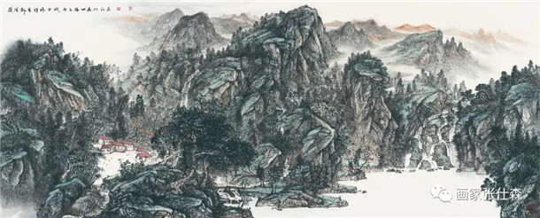 《绿水青山景更濃 群峰鏡秀詩情頌》68×136cm