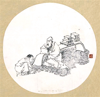 任伯年善于观察,勇于动手。他从民间艺术中积极汲取养分。来到上海后,曾到当地天主教会所办的图画馆学习西画,深入了解素描画的基础原理。此外,任伯年勤于练习,外出必备铅笔,以便随时速写人物。他最初的创作追摹明末绘画大师陈洪绶的风格,人物造型带有很强的夸张变形味道,展现出古意盎然的旨趣。他留下了大量线描作品,如《书斋清乐》《焚香诰天》《禅杖罗汉》等,用线娴熟,收放自如,展现了他学习古人的心得。