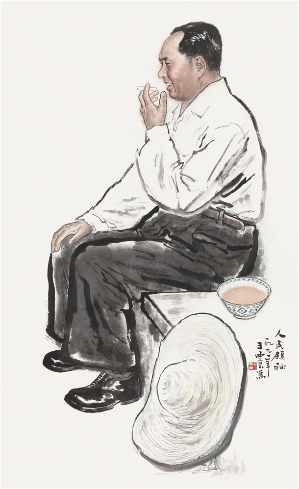 王西京对传统文化精神、对中国画特有的观念和技巧的认识不断在深化。80年代中期之后,他在人物画上新的追求表明他有新的心得和体会,有新的艺术追求。他创作的以《人民领袖》和《鲁迅》为代表的一系列描写国家领导人和历史人物的绘画,在艺术风格上有较为明显的变化。在这些作品中,作者更重视线的表现力,更注意发挥虚白在布局中的作用,语言更具有写意性,一句话,更体现出传统文化精神。他似乎把写实造型技巧隐藏在画的深处,不让它表露于外,但在人物形象塑造上,仍然可以感觉到他得益于写实的造型功底。这种风格的变化,对画家个人来说,是实践经验积累的结果,也可以说是一种新的体悟。对当时的中国社会来说,是时代给中国画创作提出的新课题,与其说这是对历史上出现的某些偏差的一种补偿,毋宁可以看作是“旧”(包括文人画在内的中国古代绘画传统)与“新”(“五四”以来形成的新传统)的“整合”。不论人们在这个问题上存在着多少意见分歧,我们必须面对这样的事实,那就是当代中国画的人物画要扎根于深厚的民族文化艺术传统,这决不意味着要单纯地走文人画老路,但在文人画的优秀传统中有可以汲取的重要养料;“新体”的写实型人物画必须体现民族精神。王西京的思维是辩证的,他清楚地意识到了问题的实质所在。似乎三个重要的概念在他脑中徘徊,那就是“民族传统”、“时代”和“个性”。因此,他的艺术风格的变化或转型是自然的,而不是刻意“做”出来的。他的许多描绘古代文人雅士或以古代诗词为题意的人物画,十分讲究笔墨语言,如笔线的遒劲洗练,墨色的丰富变化,在点、擦、皴、染中显示气韵,在变形、夸张中抒发自己的主观感情,根据描写人物特定的情景表达不同的意境。这些画没有重蹈前人的老路,而具有自己的个性特色。这表现在:一是格调清新、高雅;二是在甲面的线造型中形象有内在的饱满感。深谙民族传统艺术的情趣和格调与精湛技巧,又具有开阔的文化视野的王西京,在向艺术深处不断逼近。他的有些作品已经超越人物画的范围,用简练、含蓄甚至朦胧的语言表现某种意境,表现对人生、历史和宇宙的思考。无疑,他是在探索写意笔墨的无限可能性。
